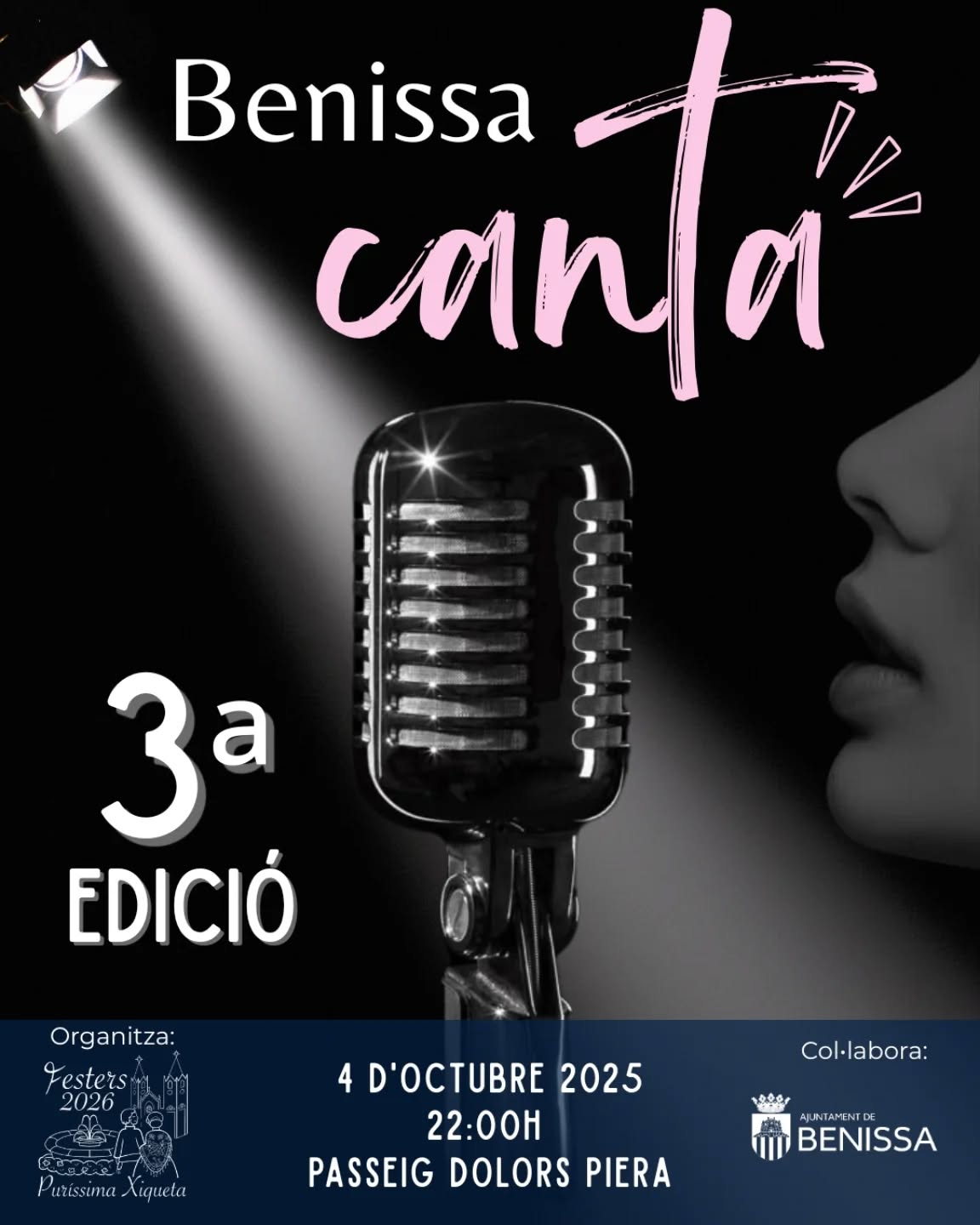 Benissa Canta Fecha Oct 04 2025 Hora 22:00 - 23:55 Localización Parking Dolores Piera Benissa. Alicante Categoría Fiestas Compartir este evento